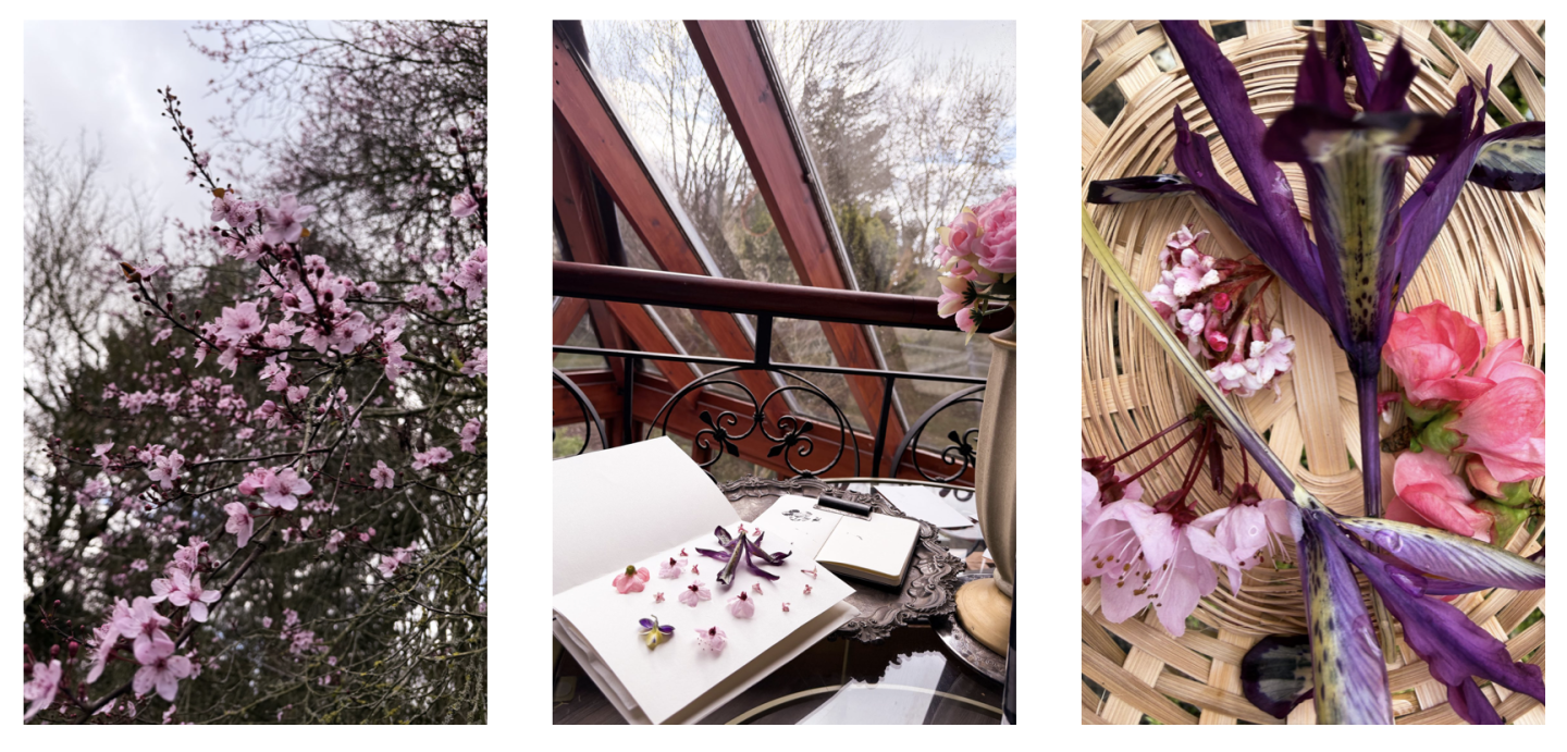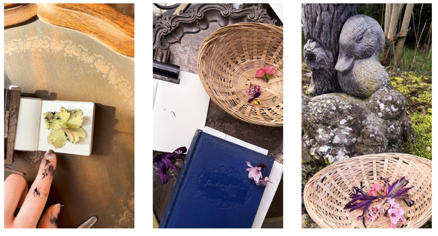 Working in a small notebook forces discipline. There is no space for excess. Each stem is positioned deliberately before pressure is applied. Ink records contact honestly; it does not correct. As I’m writing this we are always into March, I’m making the decision to swap from block ink to inking pads to see if they pick up more detail and for ease of printing as things are really picking up this month as explosions of colour appearing overnight.