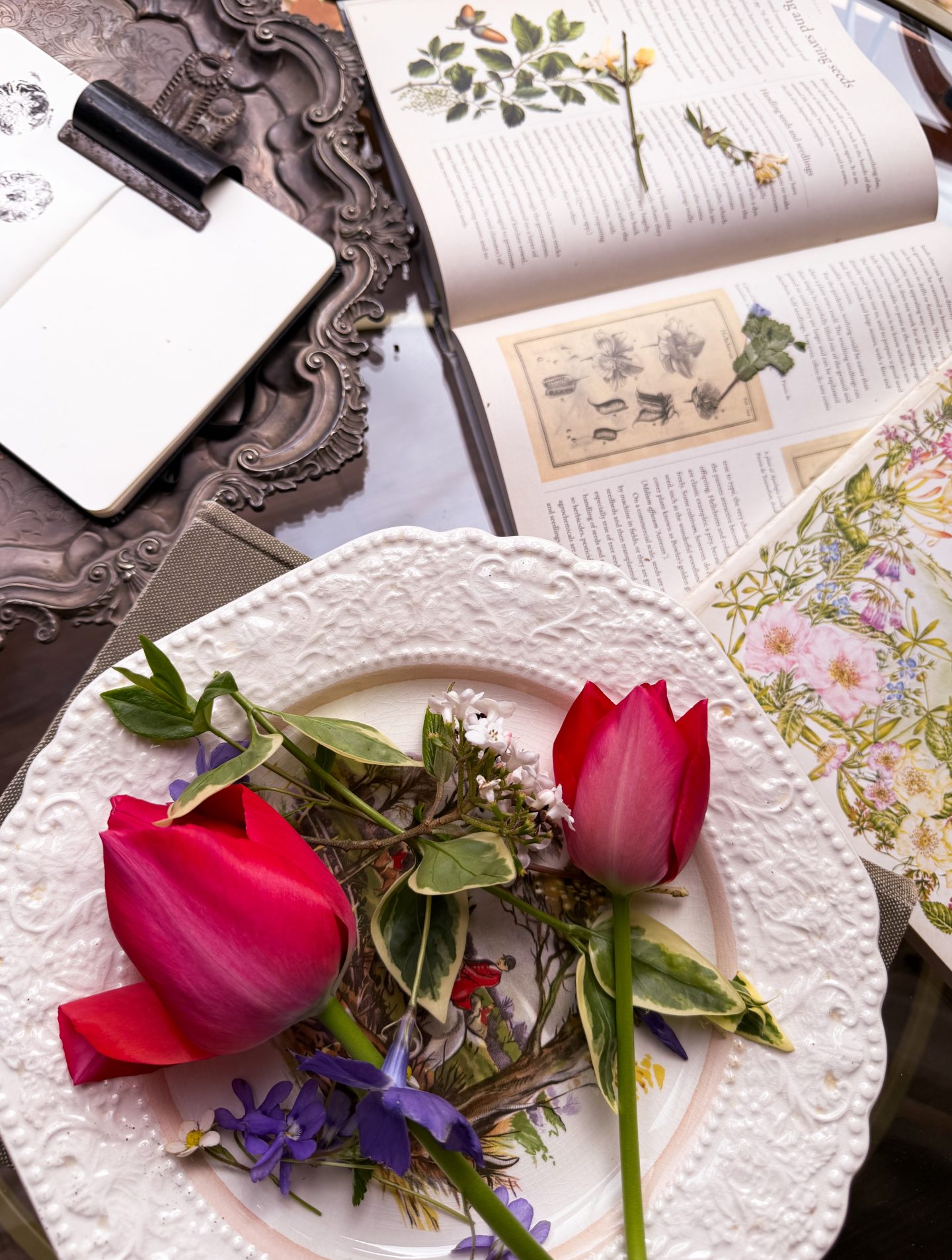 Tulip (Tulipa spp.) – controlled form. Clean lines. Almost architectural compared to everything else unfolding around it.